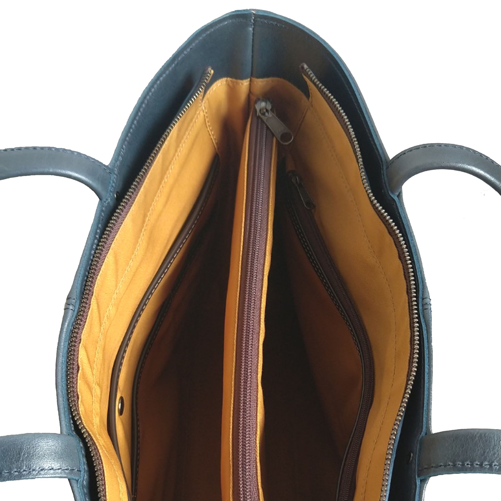 内部のファスナー仕切りポケットはタブレットなども収納出来ます。