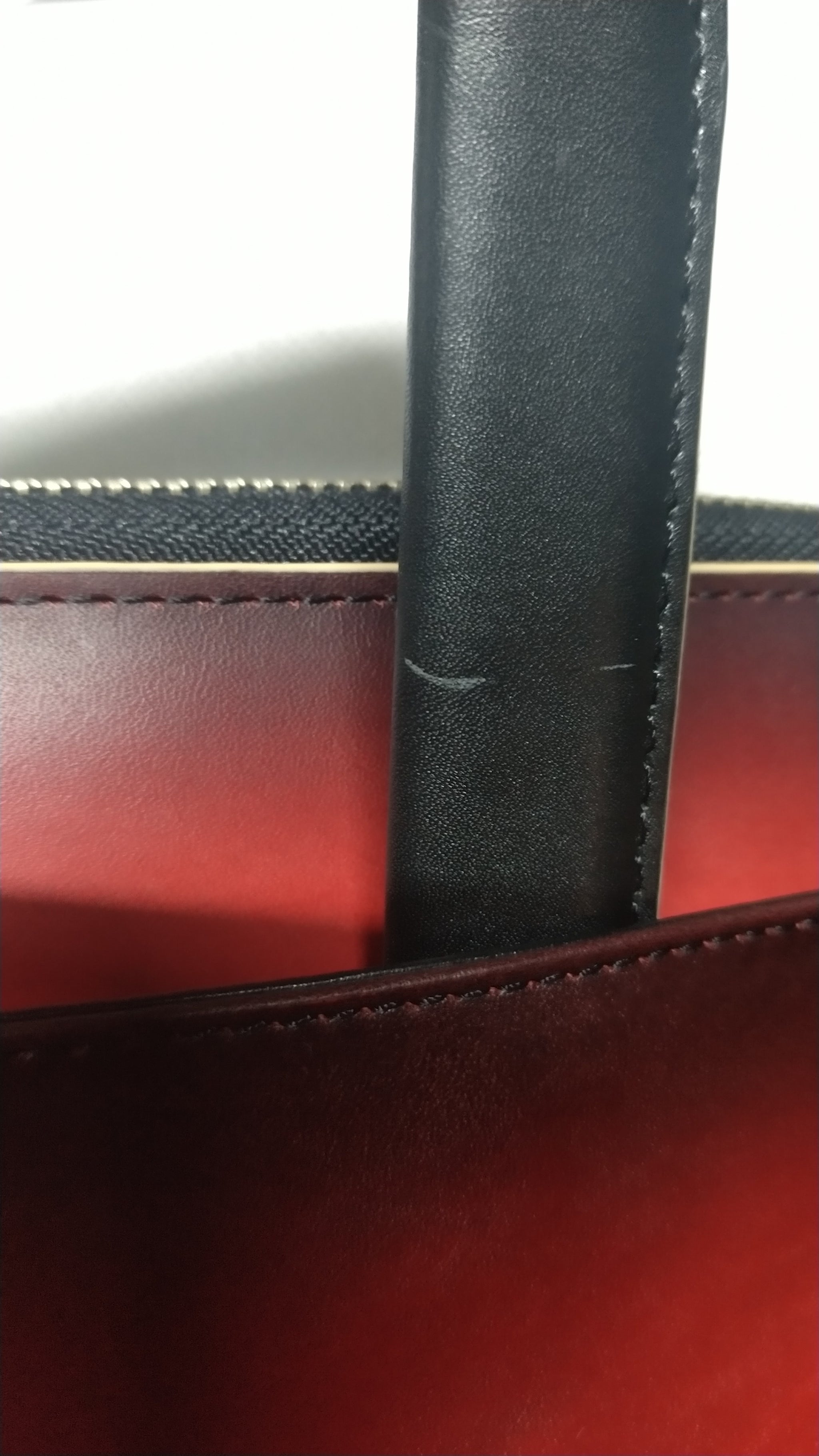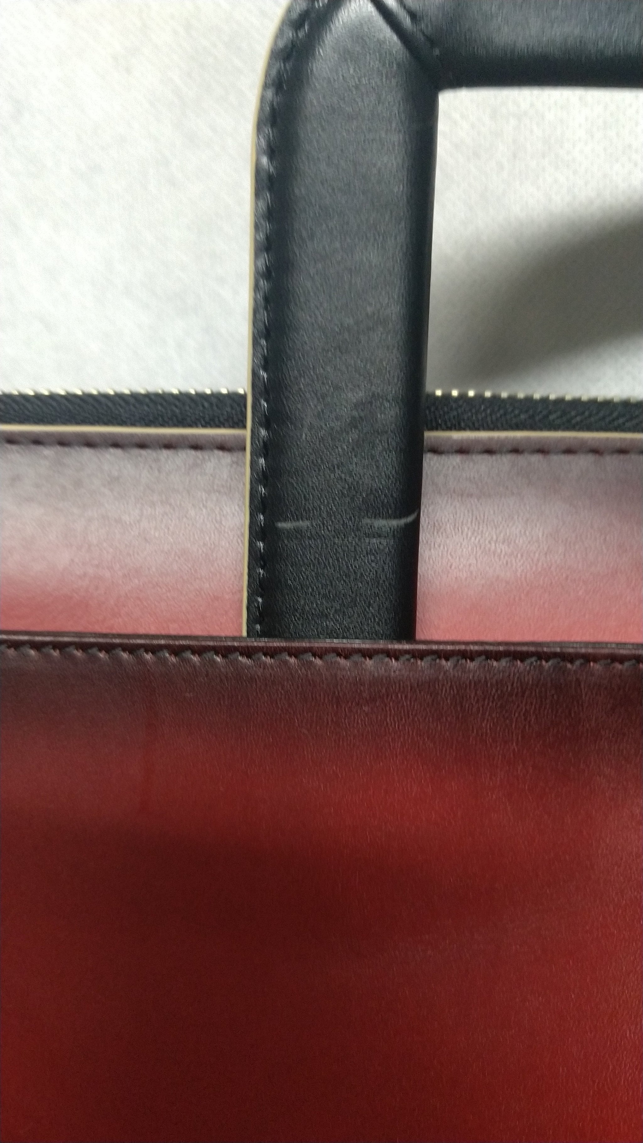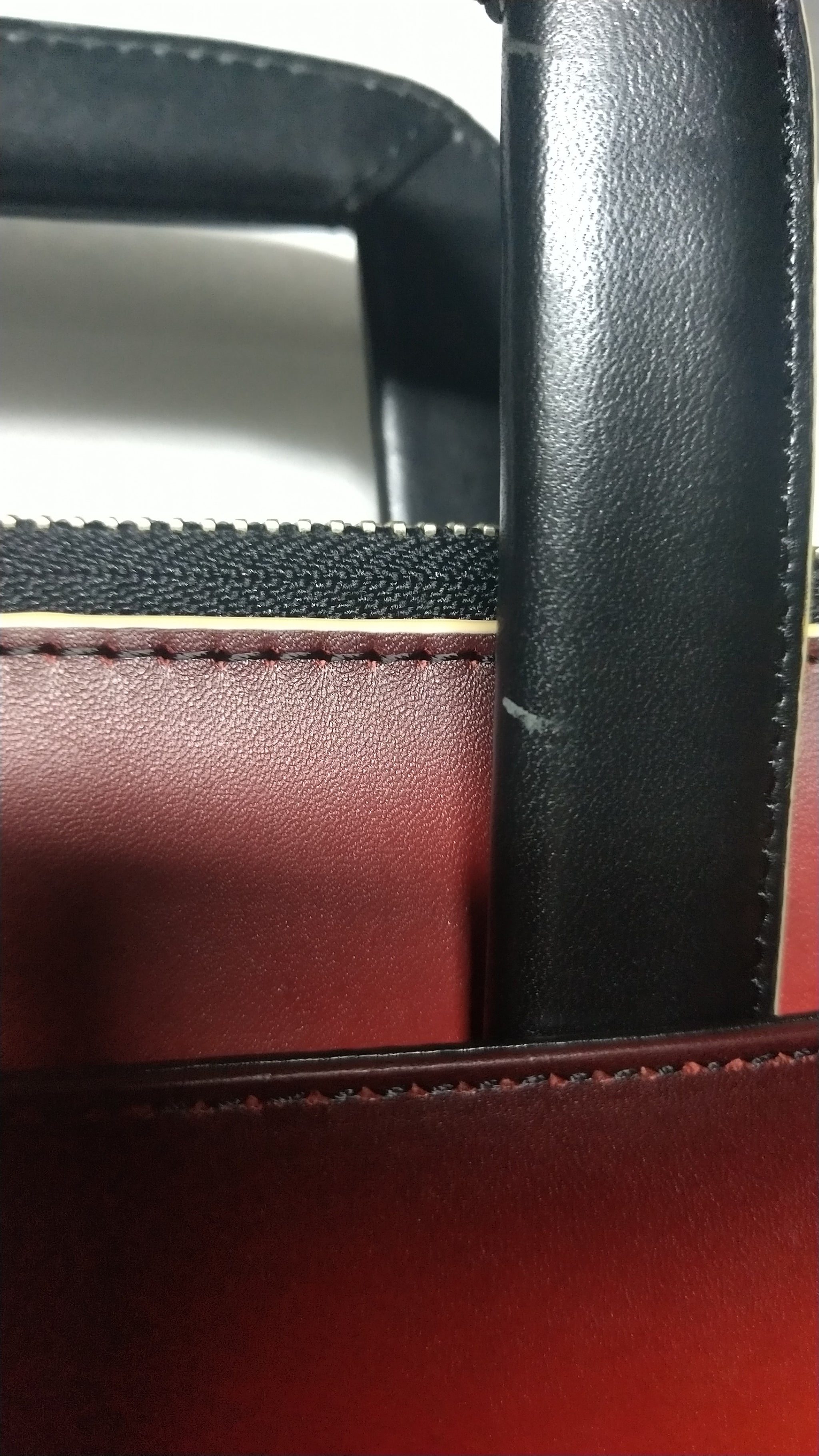 裁断したパーツごとにグラデーションして、切り目はベージュの目止め液を塗り、収納できるハンドル付きです。