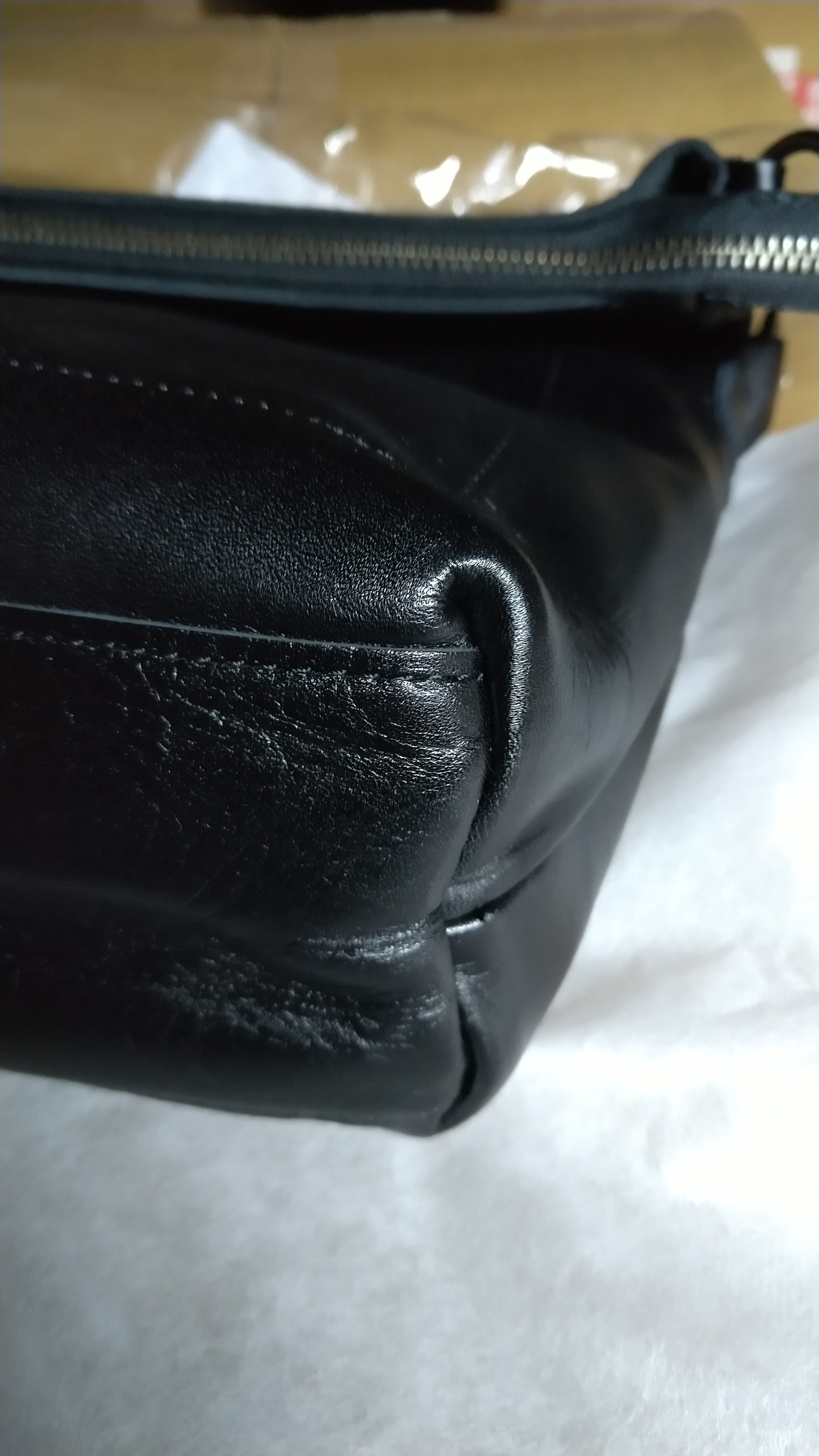 ※ショルダーとしてのご使用には何の問題もありませんが、底部の縫製にズレや歪みがある為、底が平らになっておらず立ちません。◆画像あり