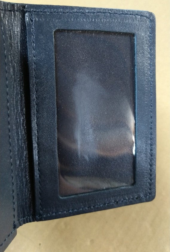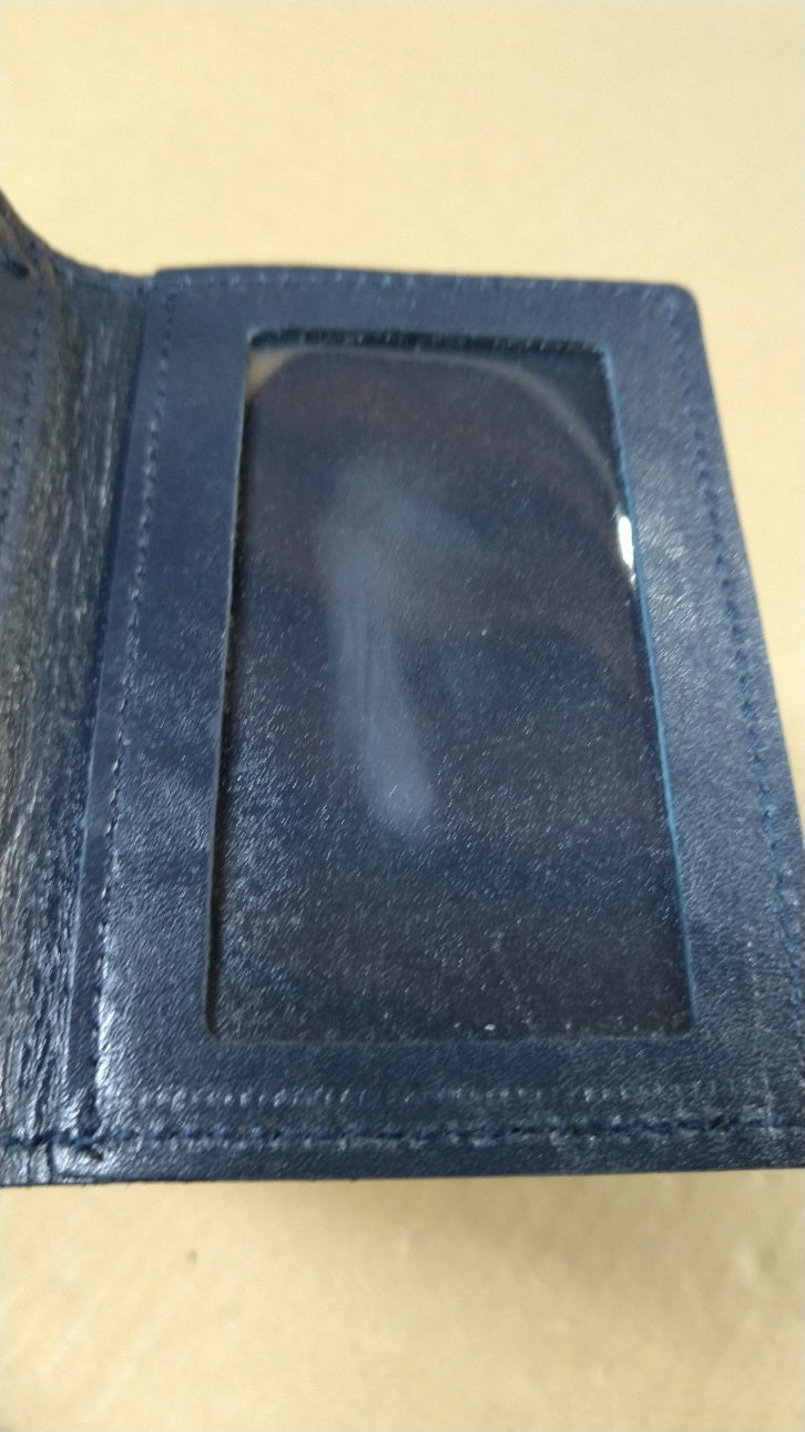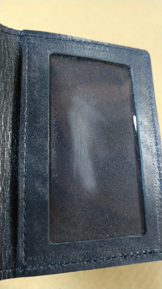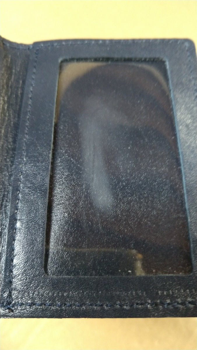 【訳アリ】日本製/国産/牛革/レザー/ネイビー/紺色/二つ折り/パスケース/コードリール付/窓付/箱入り/557105