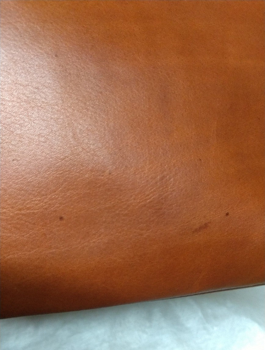 人間の皮膚がそれぞれであるように、革1枚1枚にも生きていたころの傷、天然素材特有のシワ、色ムラ、ホクロ等がある場合もございます。