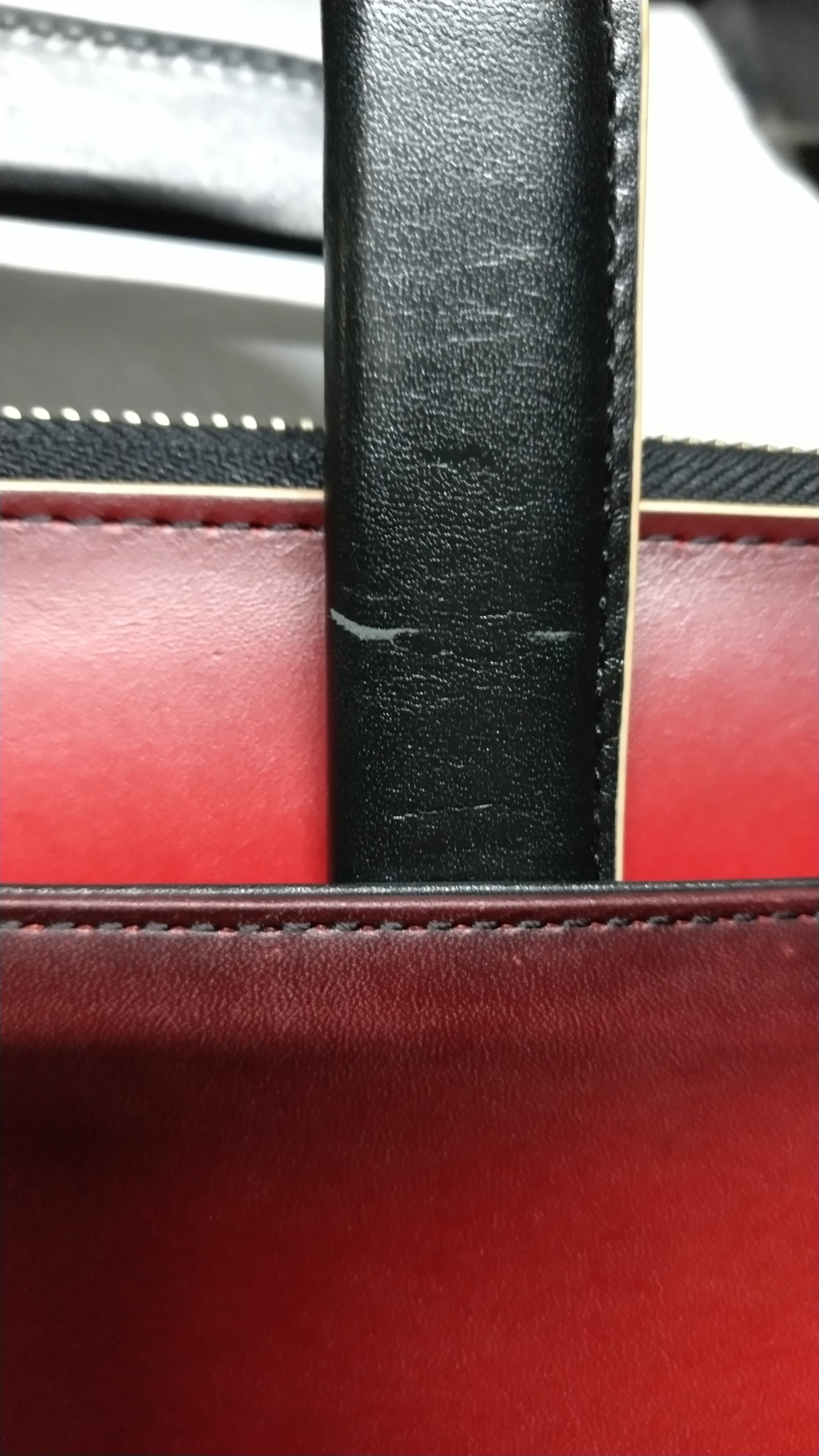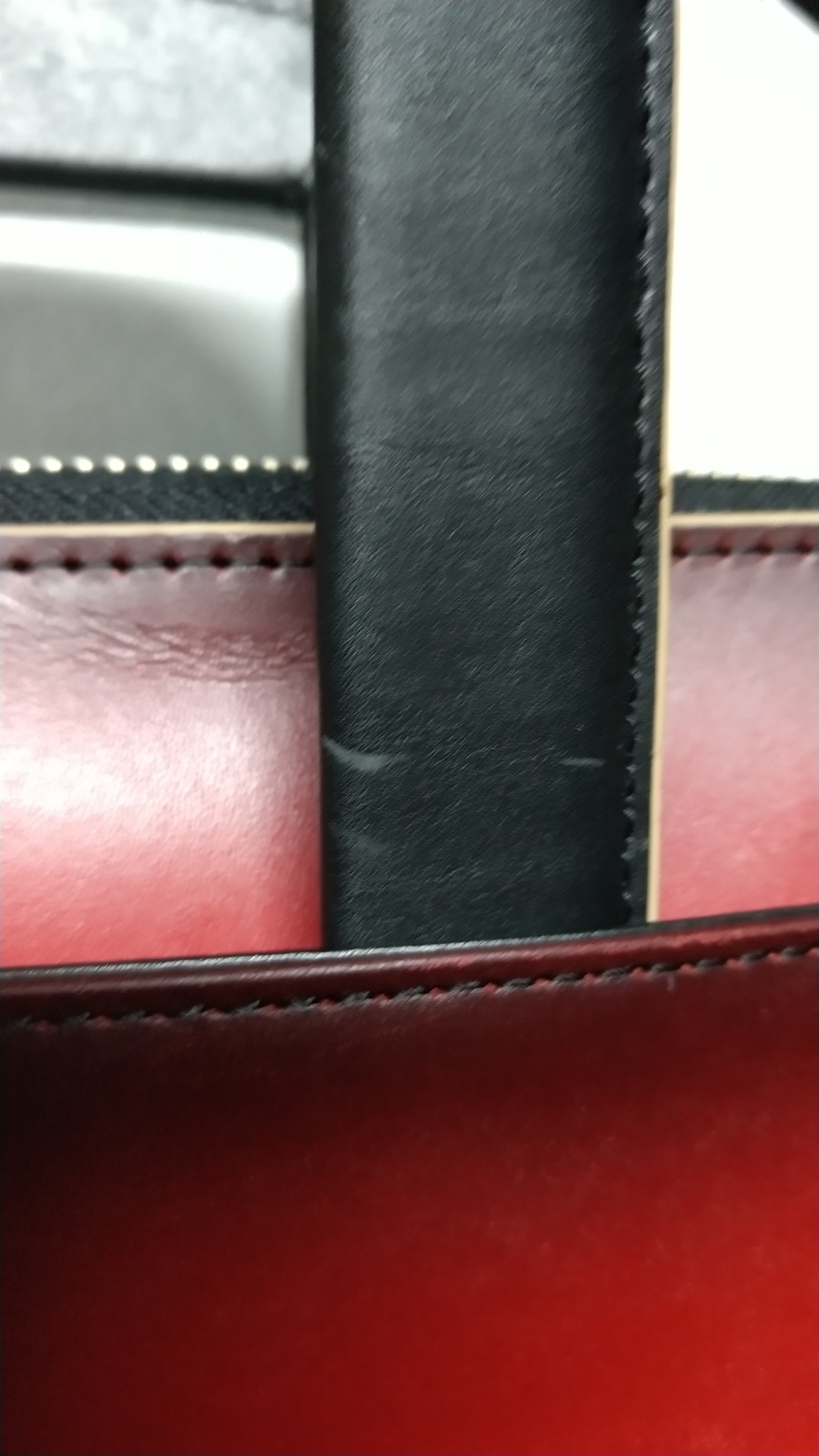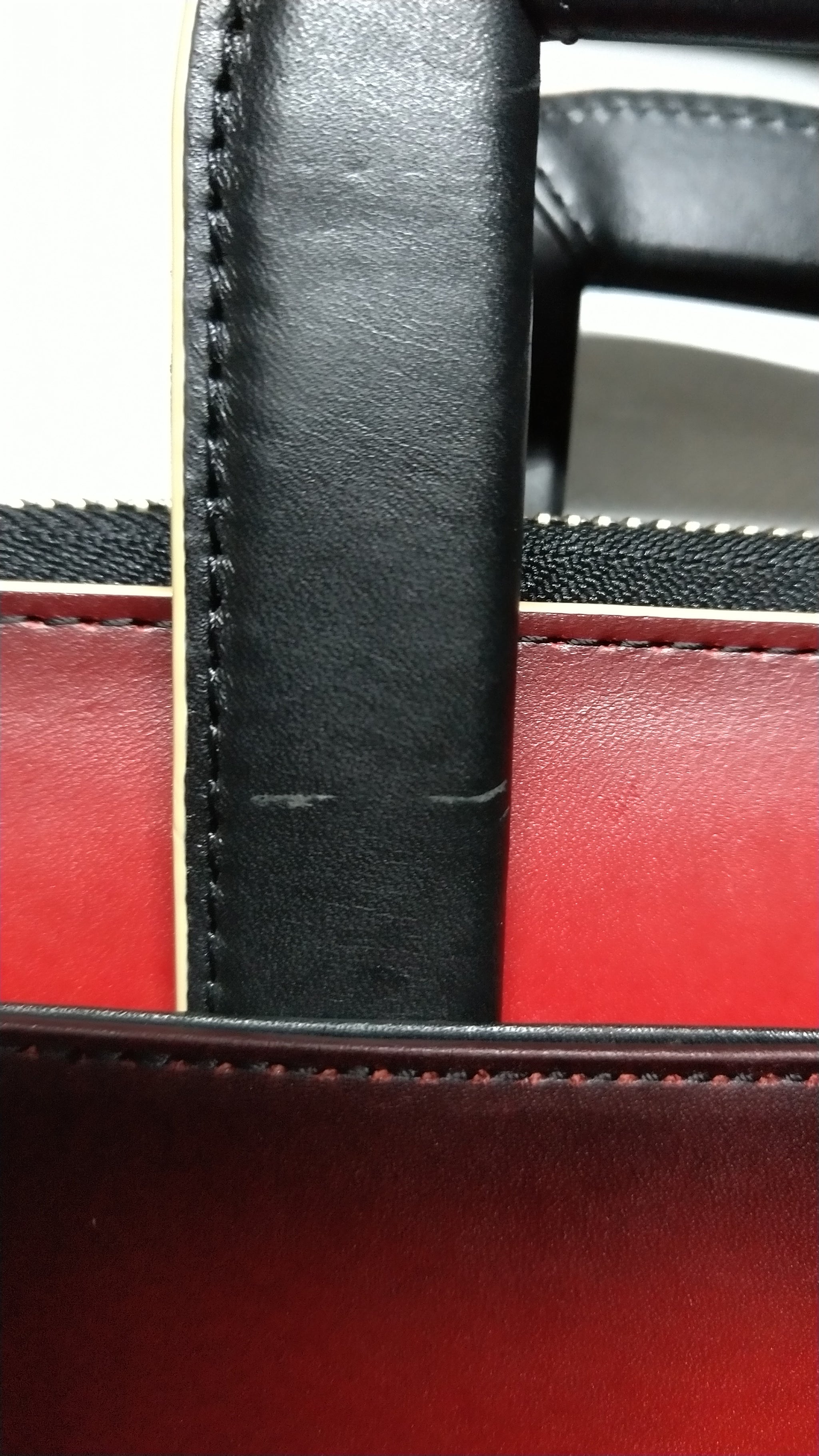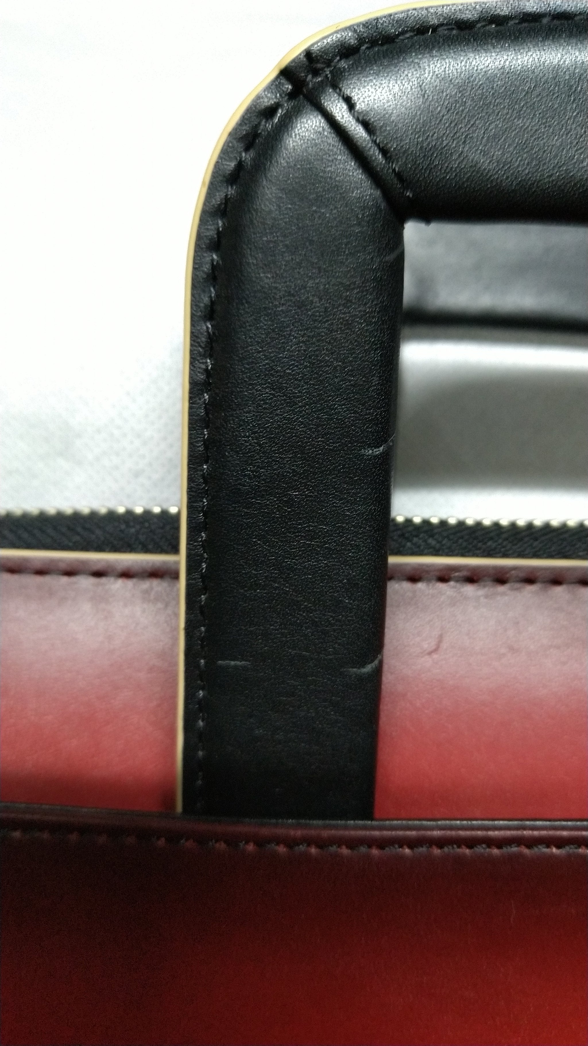 裁断したパーツごとにグラデーションして、切り目はベージュの目止め液を塗り、収納できるハンドル付きです。