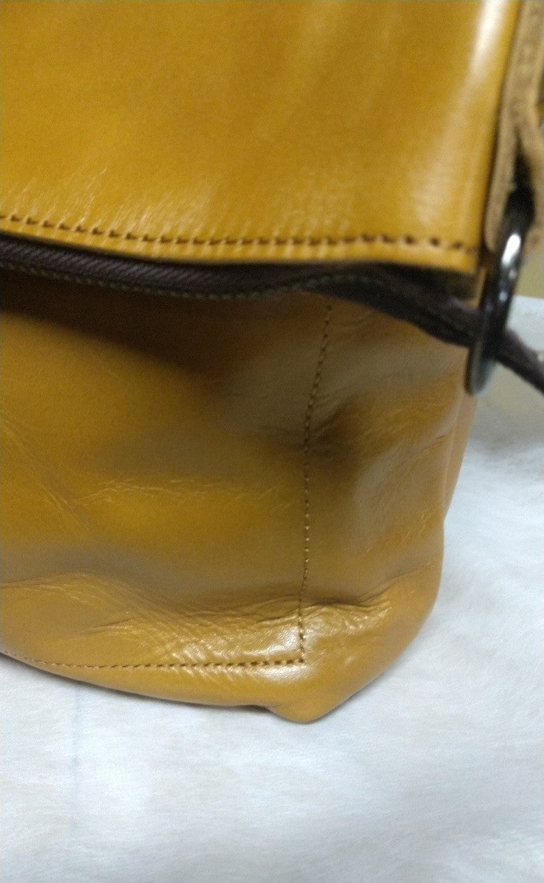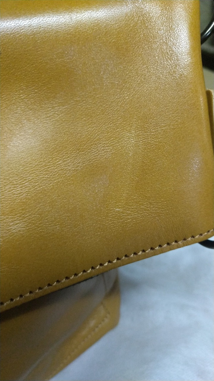 ※前面本体、向かって右下にソフトな革が使われている為、「ハリ」がなく傾いてしまいます。◆画像あり