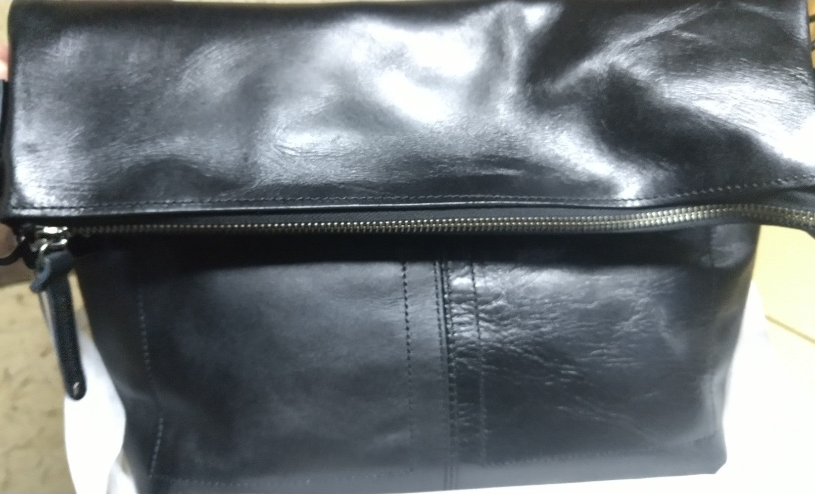 【訳アリ品】日本製/国産/豊岡製/牛革/レザー/口折れショルダー/使いやすい/ダイレクトファスナー/背面出し入れ可/黒色/ブラック/557102【リニューアル型】