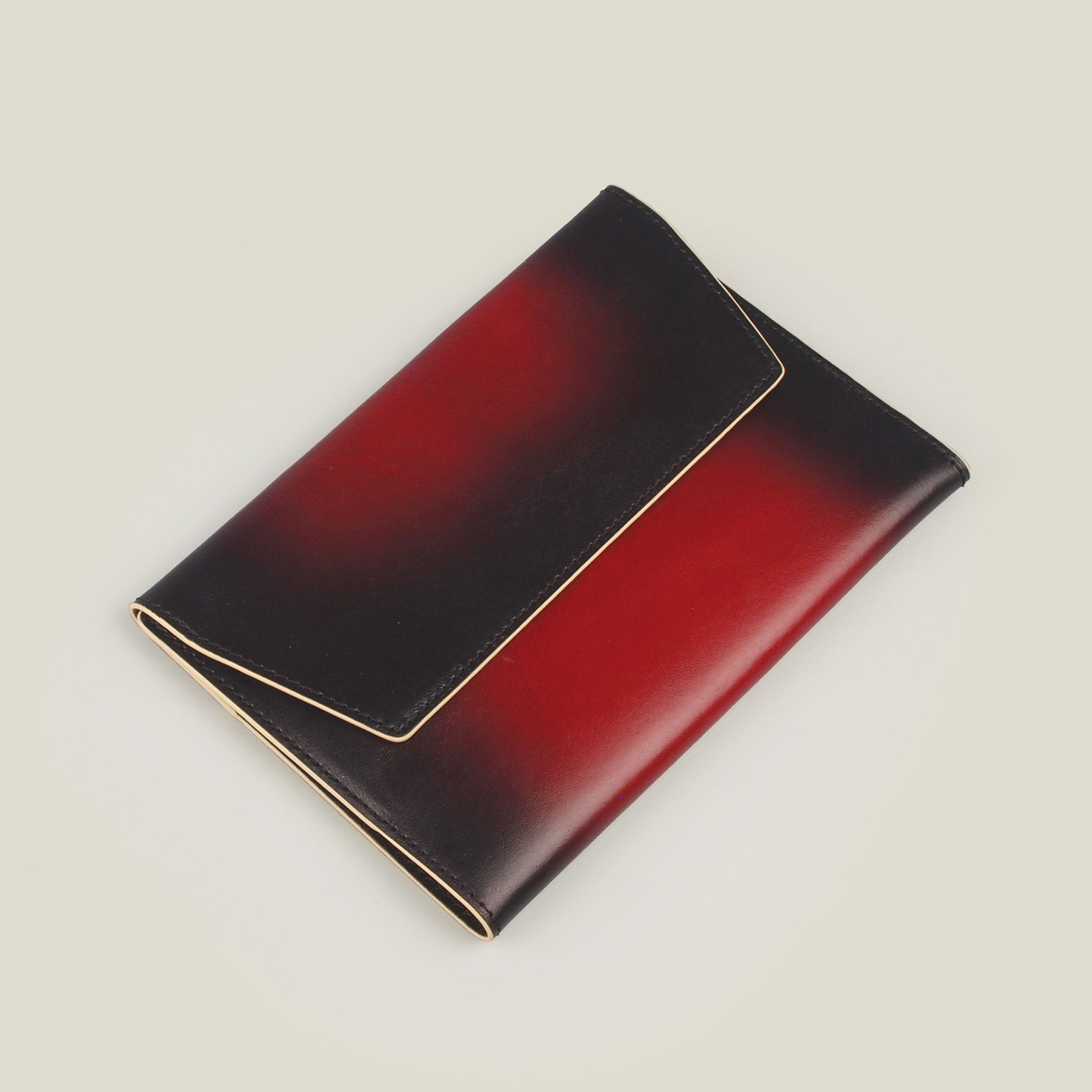 裁断したパーツごとにグラデーションして、切り目はベージュの目止め液を塗り、内側には一部チョコ色の牛革を使っています。