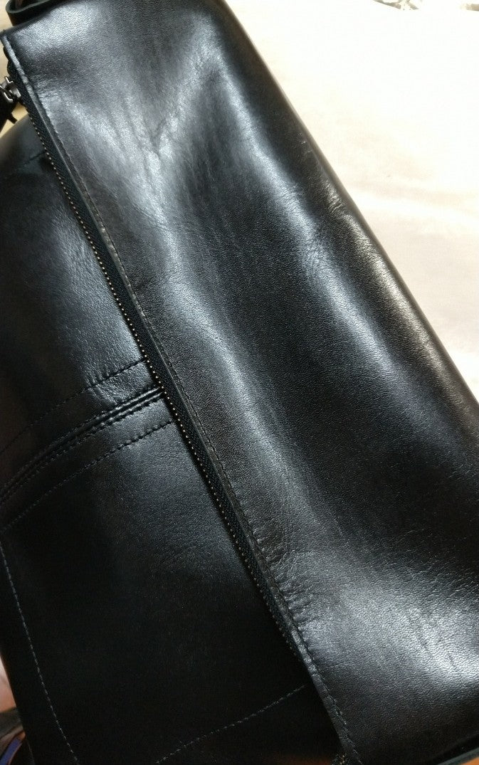 【最後の1本】【訳アリ品】日本製/牛革/レザー/ショルダーバッグ/口折れショルダー/A4対応可/男女兼用/ブラック/黒色/557102【前期型】