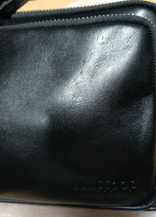 【訳アリ品】日本製/国産/牛革/レザー/斜め掛け/ウエストポーチ/ウエストバッグ/557104/黒色/ブラック④【在庫限り】