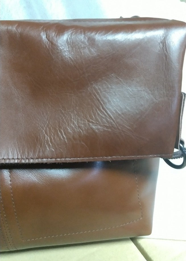 【訳アリ品】日本製/牛革/レザー/口折れショルダー/使いやすい/背面出し入れ可/ブラウン/チョコ色/557102