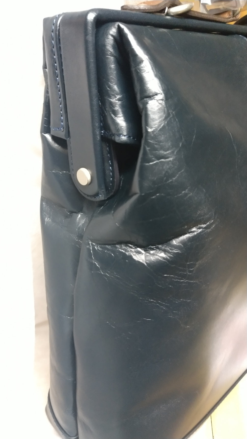 ※前面向かって左側にソフトな革が使われているためハリが無く「シワ」が目立ちます。◆画像あり